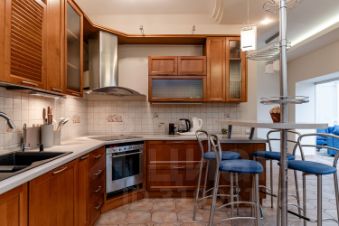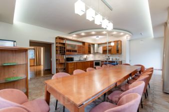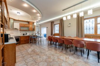 На кухне есть все необходимое для приготовления шикарного застолья. Из техники на кухне - духовка, посудомоечная машина, варочная панель, холодильник (морозилки нет!). Обеденный стол в длину 2,90 м, есть возможность увеличить