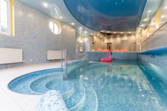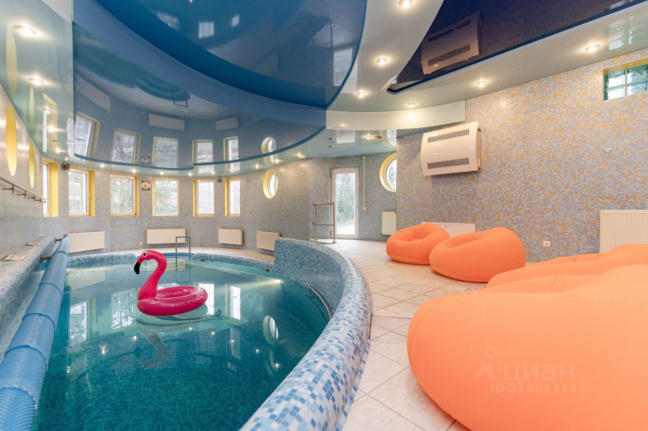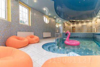 На минус 1 этаже проектор с большим экраном в домашнем кинотеатре. Большой бассейн от 1,5 до 2 м глубиной. Сауна электрическая.
