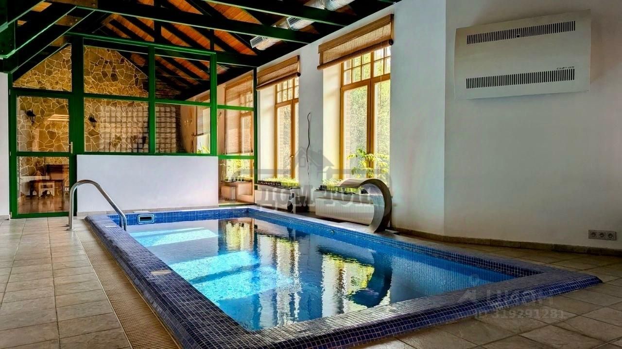 СПА-комплекс: отдельно сидящий, 2 этажа. Комната настольного тенниса, беговая дорожка. Подогреваемый бассейн 7*4*1,6 с противотоком, подсветкой, водопадом, сауна, с/у. Душевая, с/у. Просторная комната отдыха с камином, столом и лавочками.
