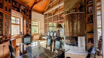 На 2-м этаже: просторный холл, спальня со своей ванной и с/у с выходом на балкон; кабинет, конференц-зал с камином; 3 спальни.