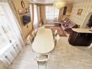 Кухня оснащена всей необходимой техникой: холодильник, духовка, посудомойка, микроволновка, кофе-машина, электрочайник. В гостиной большой телевизор с функцией smart-tv.