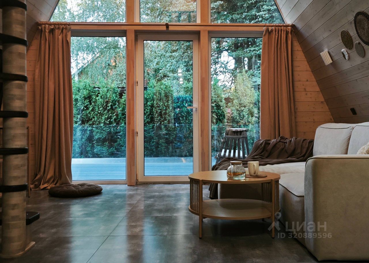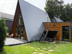 Уютный увеличенный А-фрейм с панорамными окнами "Поле" от команды Harmony.