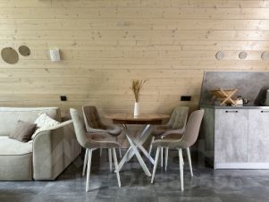 В доме есть баня на дровах с панорамным окном и большой парной. Аромат можжевелового спила и гималайской соли, мелкодисперсионный пар - невероятное ощущение релакса и наслаждения.