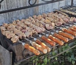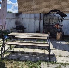 На территории есть отдельно стоящая баня на дровах, зона барбекю : стол с 2-мя скамейками под огромным зонтом от солнца и дождя (мангал, садж, казан, печь под казан, коптильня, печь барбекю , сетки, шомпуры). Уголь и розжиг просьба брать с собой.