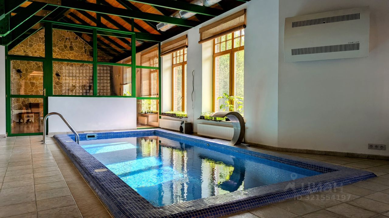 SPA-комплекс: финская сауна, бассейн с подогревом, противотоком, водопадом размером 7*4 м и глубиной 1.6 м., чайная с камином, настольный теннис, 3 комнаты отдыха