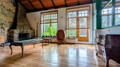 Витражные окна, мрамор, камин, картины, высокие потолки