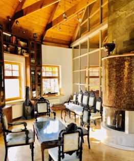библиотека с камином и кабинет с отреставрированной мебелью начала 20-го века.
