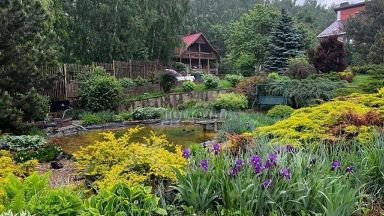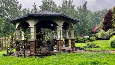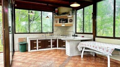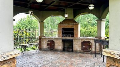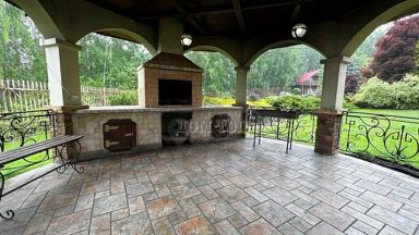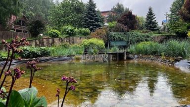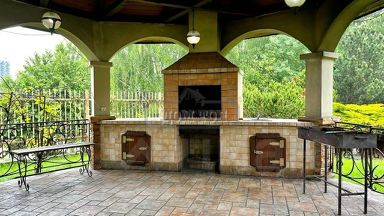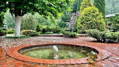 УЧАСТОК: 35 соток. Ухоженная зеленая территория. Ландшафтный дизайн. Дорожки вымощены кирпичом. На территории множество кустарников, цветом, лиственных и хвойных деревьев. Территория освещается в темное время суток. Искусственный пруд с рыбой. Качели. Крытая мангальная зона. Застекленная веранда со столом, стульями, кухней. Парковка. Отдельно стоящий СПА-комплекс.