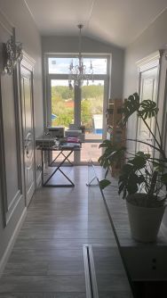 1-й этаж: просторная кухня/гостиная с выходом на веранду, санузел с постирочной, гостевая спальня, просторный коридор.