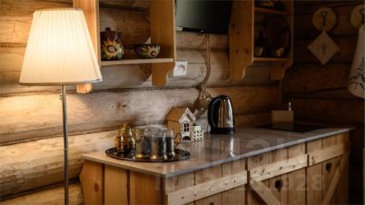 Каждая изба оборудована скоростным Wi-Fi, двуспальной кроватью, обеденной зоной, TV, плитой, мини-холодильником, сейфом, санузлом, кондиционером и эксклюзивной крестьянской утварью на первом этаже и спальней-мансардой на втором. Часть изб также оборудована защитными детскими решетками для лестниц. Детская кроватка до 3-х лет предоставляется бесплатно по запросу. В стоимость проживания в номерах Усадьбы входит предоставление одноразового набора гостя, включающего в себя шампунь, гель и шапочку для душа, мыло, зубной набор, тапочки, влажную салфетку для обуви и одежную щетку.