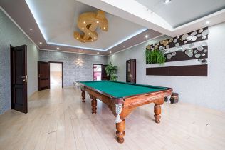 ОБ УЧАСТКЕ: Территория 15 соток. Беседка с мангальной зоной на 25 человек. Парковка на 20 машин О ДОМЕ: 1300м.кв., 3 этажа Комфортное размещение на банкет до 100 человек, на фуршет до 150 человек. Всего 10 спален ( 8 изолированных). На ночь до 35 человек. В доме: цокольный этаж: бассейн подогреваемый 10*4м баня с/у спальня (двухспальная кровать+диван раскладной) комната отдыха (2 дивана раскладных) танцпол душ 1 этаж: кухня банкетный зал 200м с танцполом и сценой 4*4 м (аудио аппаратура, караоке, светомузыка, проектор) ( до 100 человек) холл 2 с/у 2 этаж: балкон спальня ( двухспальная кровать+раскладной диван) спальня проходная ( двухспальная кровать+ диван раскладной +с/у+душ) спальня ( двухспальная кровать+диван раскладной) спальня ( двухспальная кровать) спальня проходная ( двухспальная кровать+диван раскладной+с/у+душ) спальня ( двухспальная кровать+су+ванна) спальня ( двухспальная кровать+с/у+ванна) с/у 3 этаж: холл бильярдная (русский бильярд 11 футов) 2 восточные комнаты ( 14 матрацев) спальня ( 3 полуторные кровати) спальня ( 3 двухспальные кровати) с/у+душ массажное кресло Заезд после 17:00, выезд до 14:00. СТОИМОСТЬ: Стоимость указана за будний день до 15 человек. Свыше 15 человек доплата 1000р/чел. Выходные 140000 до 15 человек. Свыше 15 человек доплата 1000р/чел. В стоимость коттеджа включены бассейн (круглые сутки), сауна (4 часа в сутки), бильярд, мангал, посуда ( до 30 человек). ДОПОЛНИТЕЛЬНЫЕ ПЛАТЫ: Банкетная посуда оплачивается дополнительно. Дополнительно оплачивается уборка от 5000 р (в зависимости от того, в каком состоянии останется дом), постельное белье 400р/комплект, полотенце 100р/шт, тапочки 200р/пара Можно со своим кейтерингом. Пробкового сбора нет. Украшение банкетного зала оплачивается дополнительно 2500р/стол. ОСОБЫЕ УСЛОВИЯ: Обязательно в день заезда вносится залог 15000. Есть ограничения по шуму на улице после 21:00. Запрещено использование кальяна. Запрещен запуск салюта. При заезде с животным дополнительно оплачивается 2000р за одно животное.