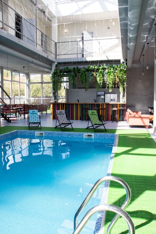 тёплый бассейн 57,5 м с подсветкой и стеклянным атриумом