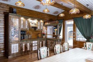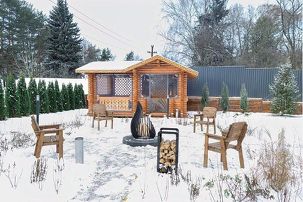 - Всё необходимое для гостей: тапочки, халаты, полотенца, гигиенические принадлежности, веники, травы, ароматические масла, шампуры, уголь, дрова, розжиг, специи, чай и кофе, лёд.