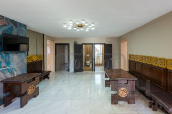 В ДОМЕ: 3 этажа, 6 спален, до 40 спальных мест. Банкетный зал 130 кв.м. на 65 персон с барной стойкой. Просторный холл. Гардеробная. Кухня столовая с посудой и необходимой техникой. На третьем этаже + 1 огромная комната спальня в восточном стиле с большим количеством спальных мест, бильярд. На цокольном этаже СПА-зона.