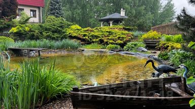 На участке декоративные фруктовые и лесные деревья, свой пруд с золотыми рыбками, водопад, фонтан, беседка с камином и барбекю, летняя автономная кухня, отдельно стоящий 15х5 м. круглогодичный бассейн с подогревом.