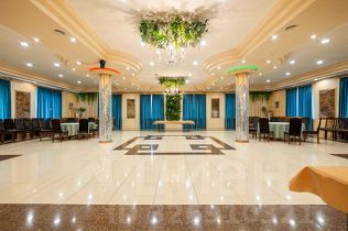 Главным преимуществом дома является величественный и вместительный банкетный зал. Он оборудован специальным подиумом для выступлений, профессиональной аудиоаппаратурой и динамичной светомузыкой, что позволяет организовать незабываемую развлекательную программу. Рядом находится полностью укомплектованная кухня с широким выбором посуды и современной техники, подходящая как для профессионального кейтеринга, так и для самостоятельного приготовления изысканных блюд.