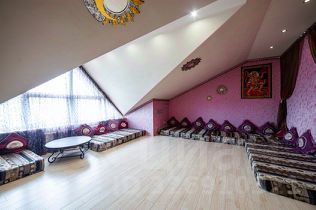 Жилая зона распределена по нескольким уровням и включает в себя множество комфортабельных номеров. Предусмотрены как стандартные варианты с индивидуальными удобствами, так и просторные многокомнатные апартаменты. Особое внимание уделено номеру для молодоженов, который отличается особой атмосферой. Для больших групп организованы уютные комнаты в восточном стиле и многоместные спальни. Также в доме предусмотрена специальная игровая комната для маленьких гостей.