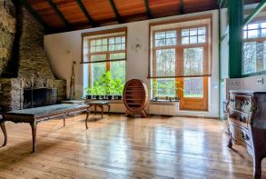 библиотека с камином и кабинет с отреставрированной мебелью начала 20-го века.