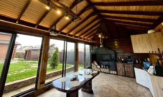 - Первый этаж: Вас встречают две просторные прихожие. Главное место притяжения — огромная светлая гостиная, совмещенная с прекрасно оборудованной кухней. В гостиной установлен большой и удобный диван, плазменная панель и настоящий дровяной камин, который наполняет дом неповторимым теплом и уютом. Также на первом этаже расположен первый санузел и одна спальня (в данный момент оборудована под удобную сушильную комнату).