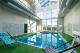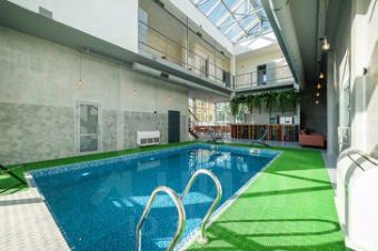 Особую атмосферу придает стеклянный атриум, расположенный над бассейном.