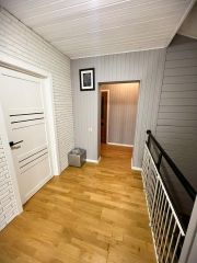 1 этаж: кухня, гостиная, гардеробная, санузел и гостевая комната.
