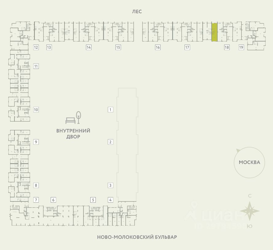 Помещение расположено в новом 13 корпусе ЖК Ново-Молоково, в 20 минутах на авто от метро Домодедовская (9 км от МКАД по Каширскому шоссе). На территории ЖК: 2 детских сада, бульвары, магазины, строится школа на 825 мест. Рядом ведется строительство новой дороги: расширение трассы Москва-аэропорт Домодедово (2025), скоростная трасса ЮЛА (2025-2026), в непосредственной близости от 13 корпуса, будет проходит новая трасса: Каширское шоссе- Молоково-Андреевское.