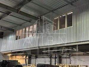 борудованы помещения для персонала на мезонине площадью 100 кв.м. Есть окна. Земля и здание в собственности.