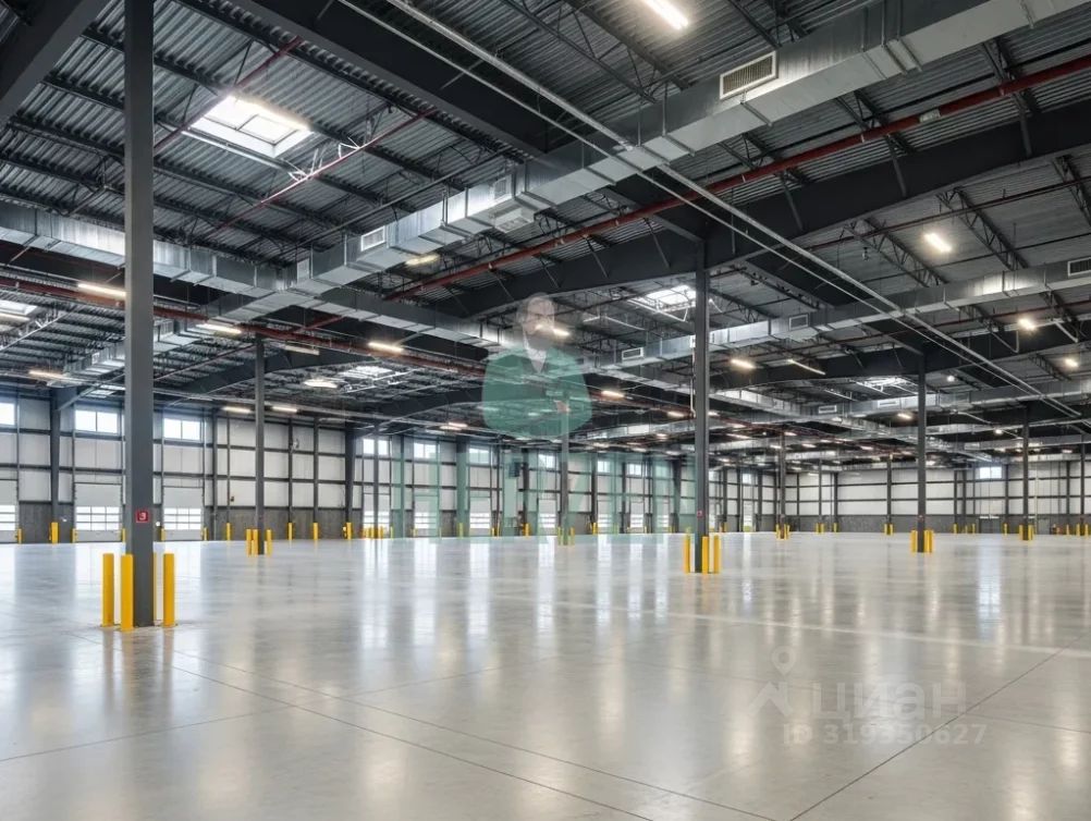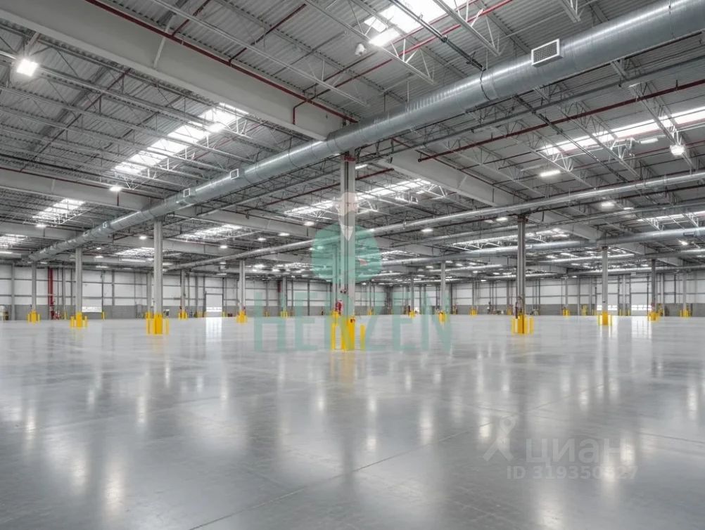 Ровный бетонный пол с антипылевым покрытием. Допустимая нагрузка на пол 5 т/м2