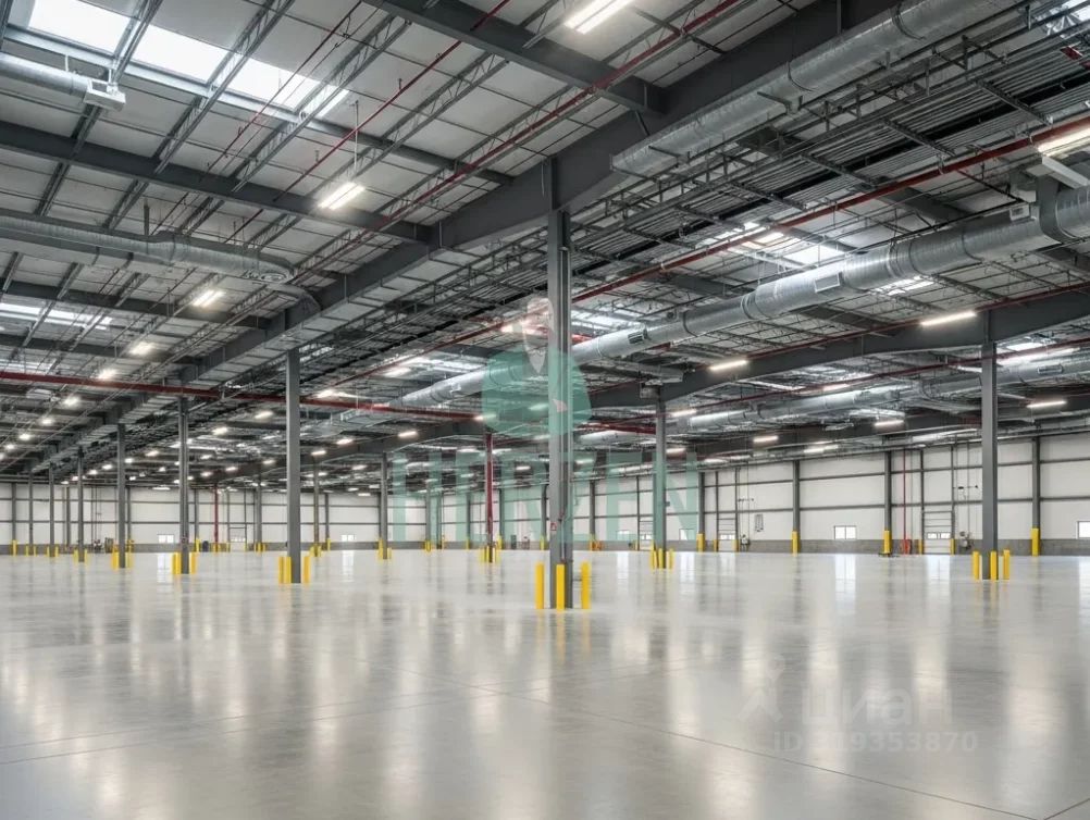 Ровный бетонный пол с антипылевым покрытием. Допустимая нагрузка на пол 5 т/м2