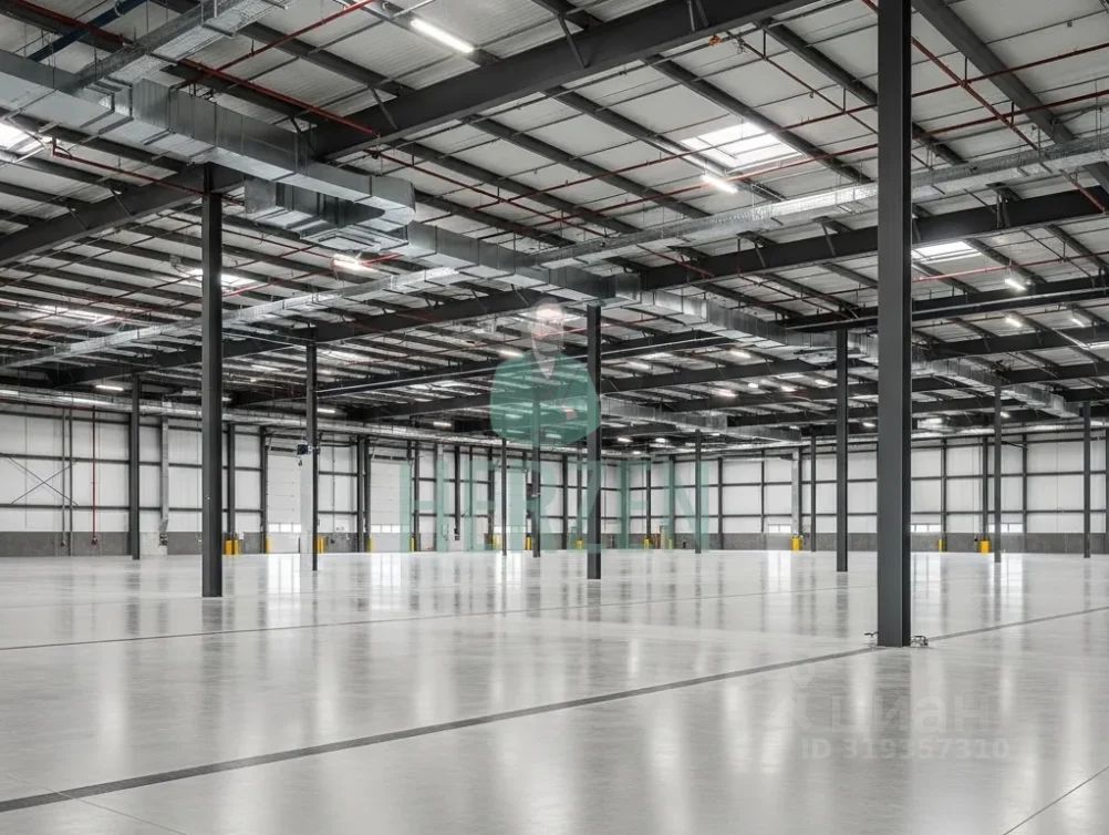 Ровный бетонный пол с антипылевым покрытием. Допустимая нагрузка на пол 6 т/м2