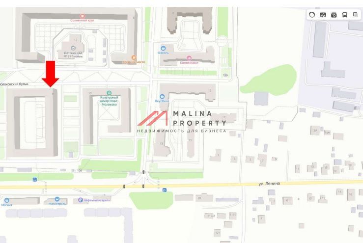 Продажа торгового помещения 289,9 м2 по адресу пгт. Молоково, Ново-Молоковский бульвар, д. 8 (25 минут транспортом от метро Домодедовская). 1-я линия домов.