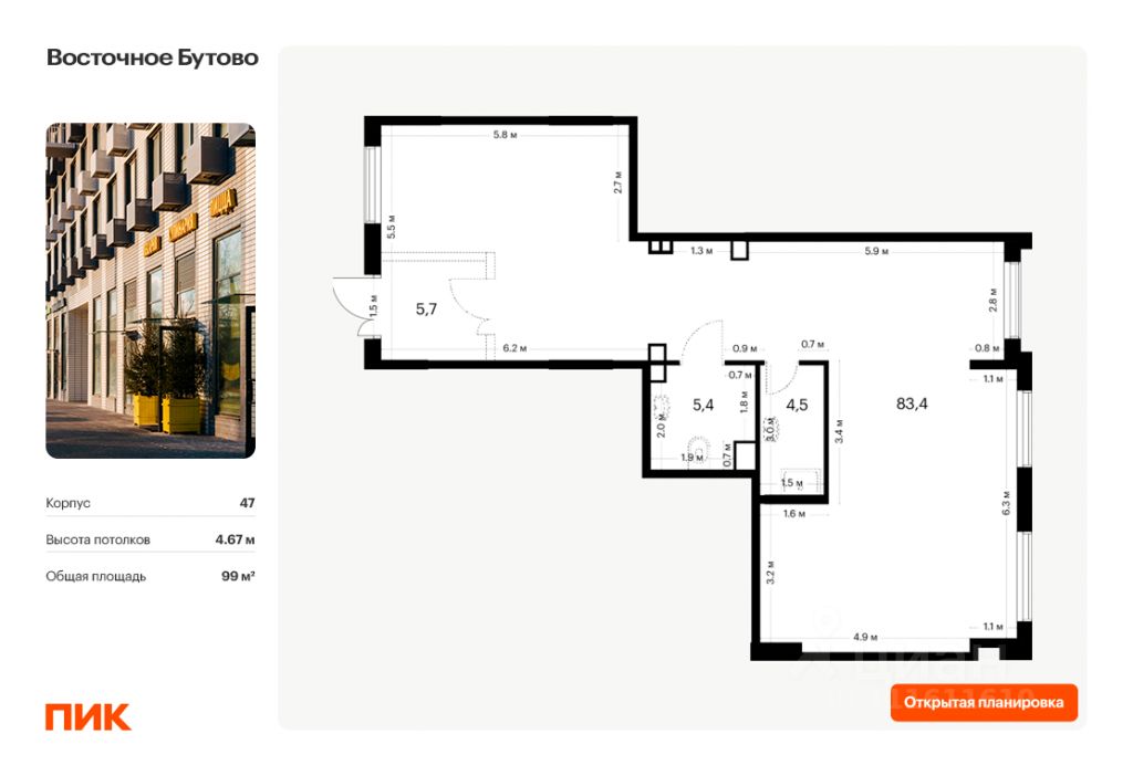 Выгода 5% на строящееся помещение по промокоду KEY5 до 30 ноября. Продаётся нежилое помещение свободного назначения в новом жилом районе Восточное Бутово от ПИК. Открытая планировка, витринное остекление, удобный вход на уровне земли. Помещение номер 8. Продажа напрямую от застройщика.