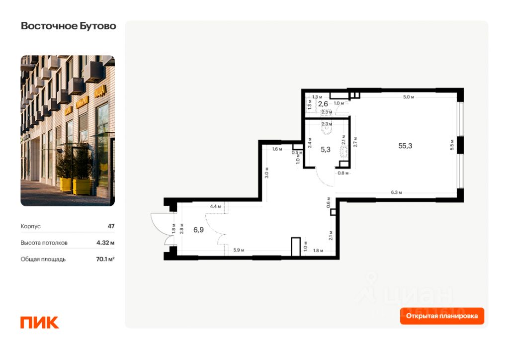 Выгода 5% на строящееся помещение по промокоду KEY5 до 30 ноября. Продаётся нежилое помещение свободного назначения в новом жилом районе Восточное Бутово от ПИК. Открытая планировка, витринное остекление, удобный вход на уровне земли. Помещение номер 2. Продажа напрямую от застройщика.