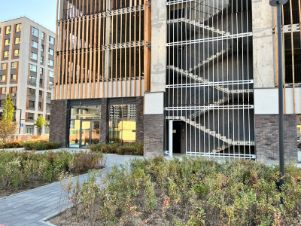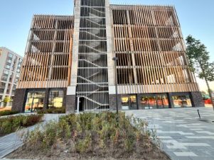 Паркинг имеет шесть этажей. На первом этаже спроектированы автомойка и различные торговые точки: кафе, пекарня, цветочные магазины, салоны красоты и офисы. В зоне парковки предусмотрены охрана и видеонаблюдение, лифты и система навигации. Въезд на паркинг для собственников машиномест осуществляется автоматизированной системой контроля доступа. Движение между уровнями обеспечит удобная двухполосная рампа.