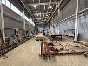 Производственно-складские здания оборудованы четырьмя кран-балками грузоподъемностью 3,2 тонны каждая. Высота потолков 12 метров. Бетонные полы с антипылевым покрытием рассчитаны на назрузку 5 тонн/кв.м. Несколько ворот для въезда еврофуры внутрь под разгрузку балками.