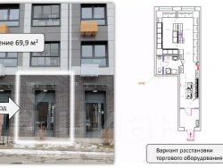 Технические характеристики: Общая площадь 70 кв.м.; Первый этаж 16 - этажного торгового центра.; Высота потолков 4м.; Свободная планировка.
