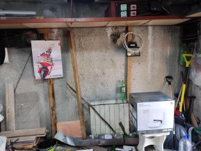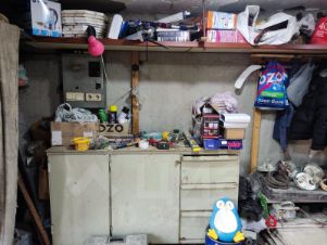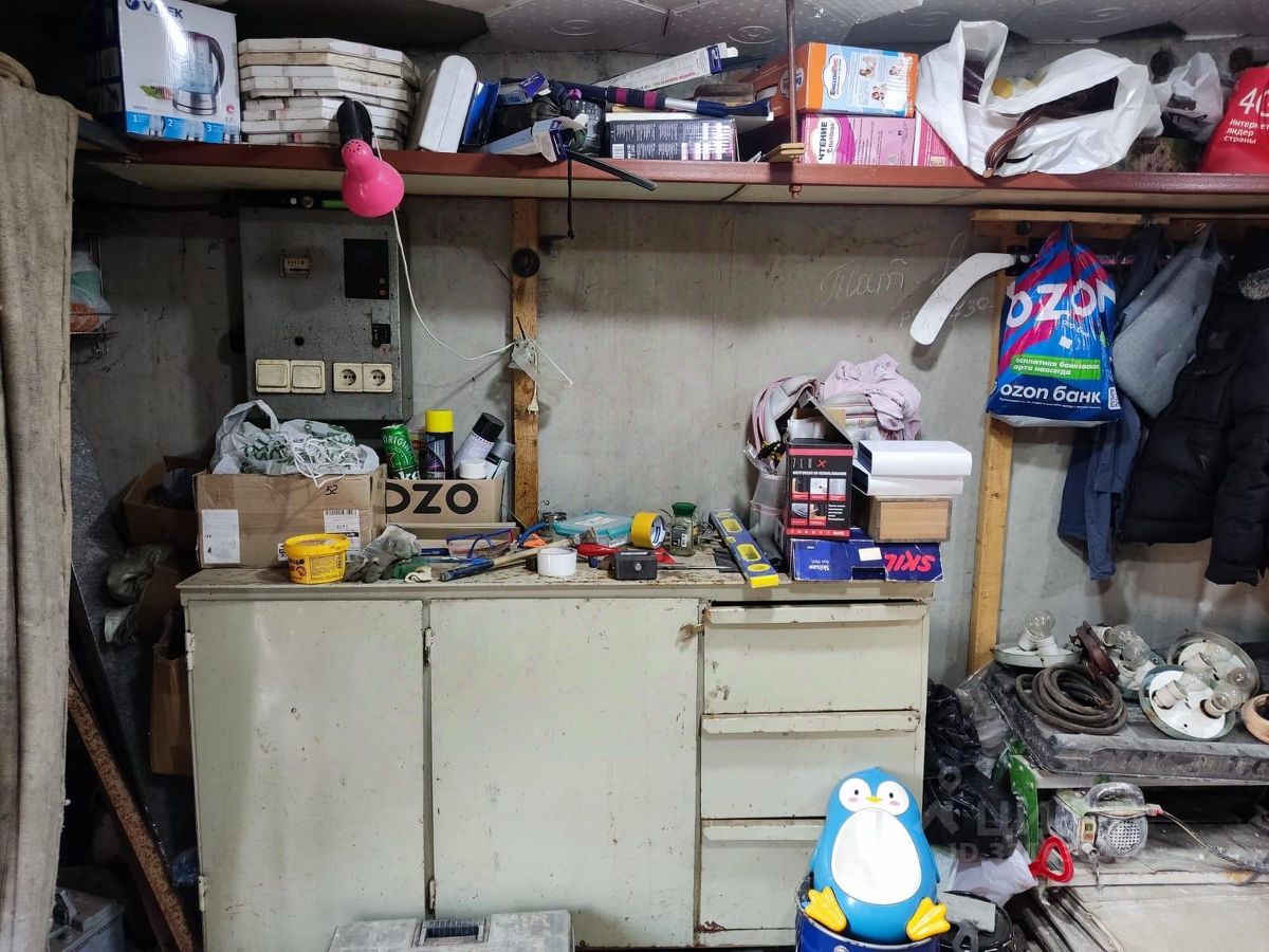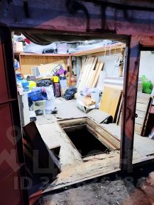 Имеется смотровая яма и погреб, стеллажи и антресоли вдоль стен. Воды в яме нет
