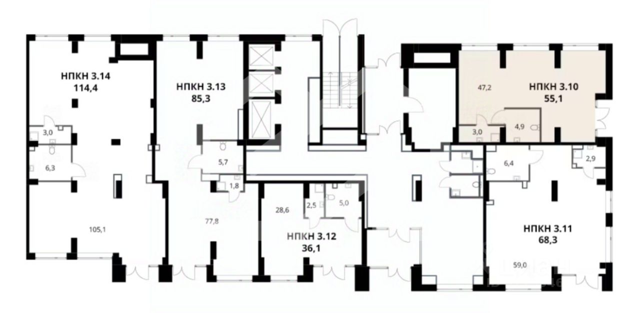 1047741 . Предлагаем помещение свободного назначения формата street-retail в ЖК "1-й Донской", площадью 55.1 кв. м, расположенное на первом этаже 24-этажного жилого дома. Корпус: 3. 3 секция. Без комиссии для покупателя.