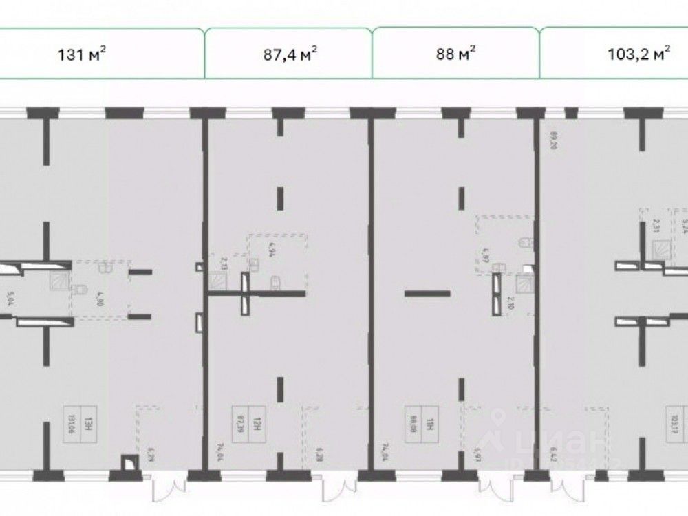 . - Лот под объединение из 4 помещений: минимум несущих колонн, открытая планировка, 4 мокрых точки, 4 входа, 10 витринных окон со двора и 6 с фасадной части здания.