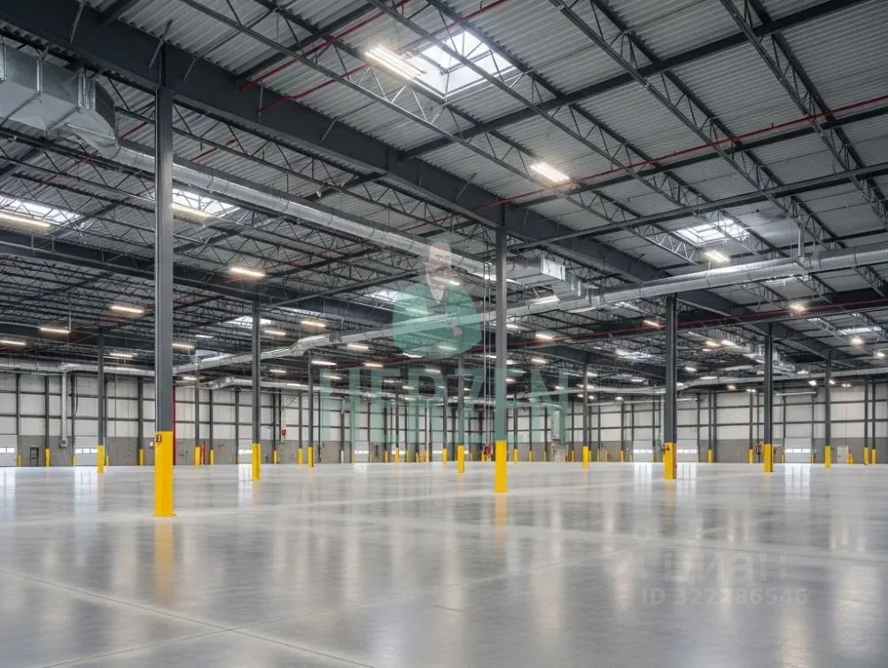 Ровный бетонный пол с антипылевым покрытием. Допустимая нагрузка на пол 5 т/м2