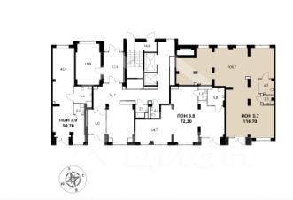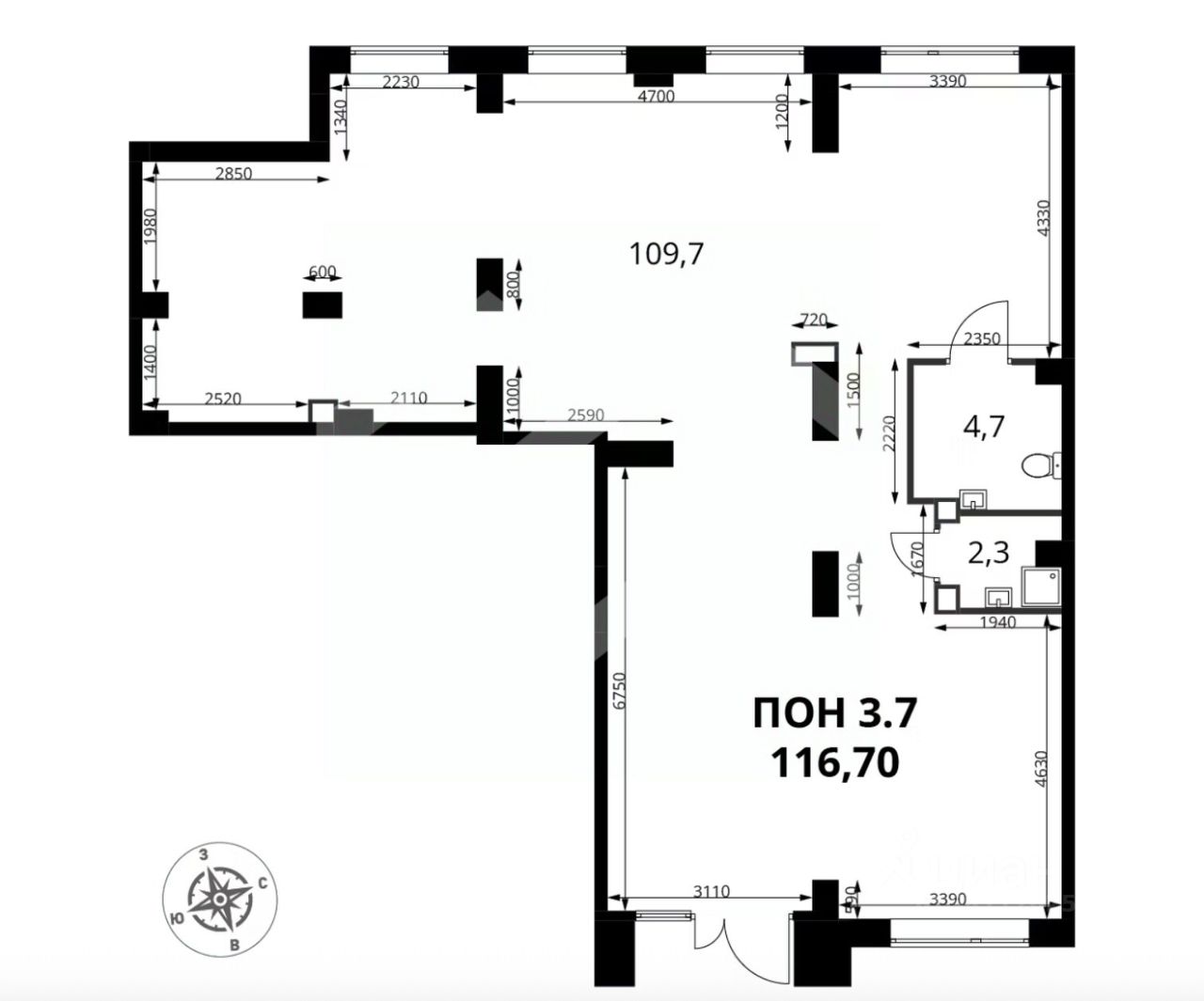 991422 . Предлагаем помещение свободного назначения формата street-retail в ЖК "1-й Южный", площадью 116.7 кв. м, расположенное на первом этаже 25-этажного жилого дома. Корпус 10. Без комиссии для покупателя.