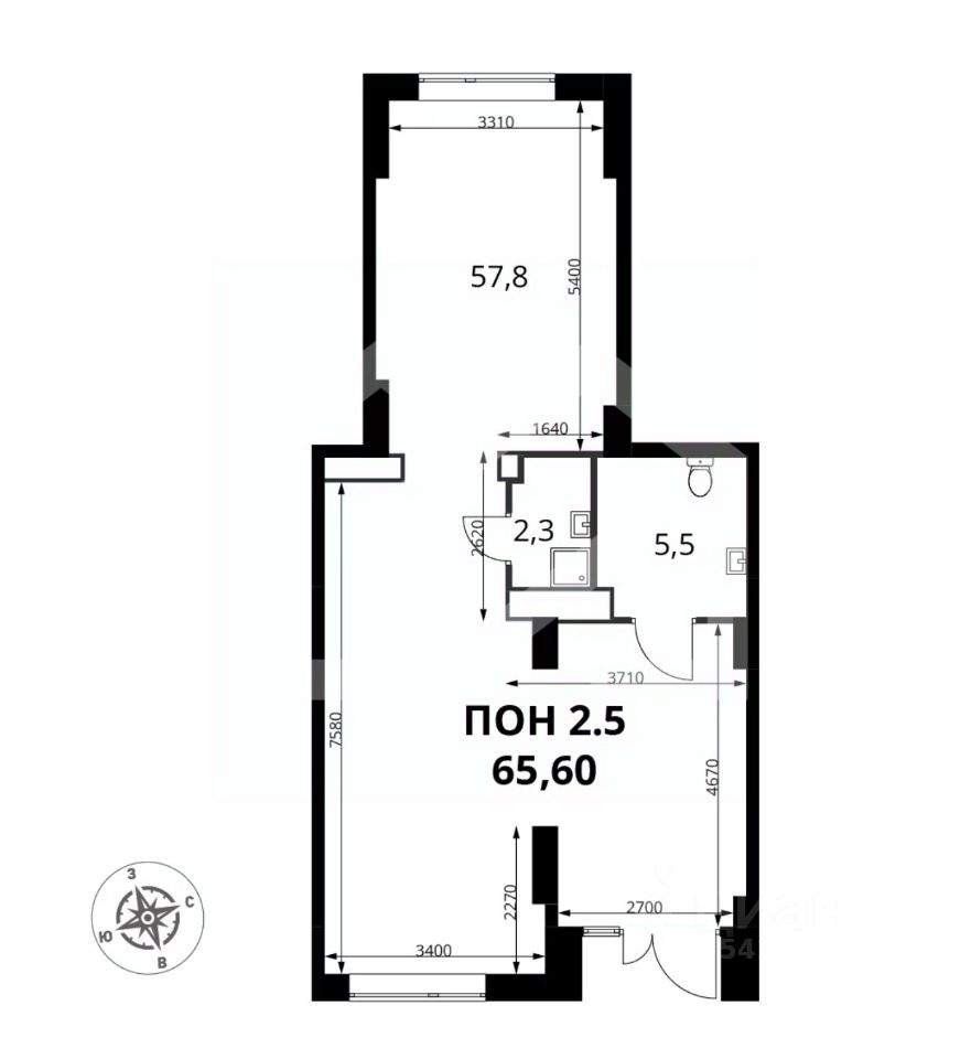991380 . Предлагаем помещение свободного назначения формата street-retail в ЖК "1-й Южный", площадью 65.6 кв. м, расположенное на первом этаже 25-этажного жилого дома. Корпус 10. Без комиссии для покупателя.