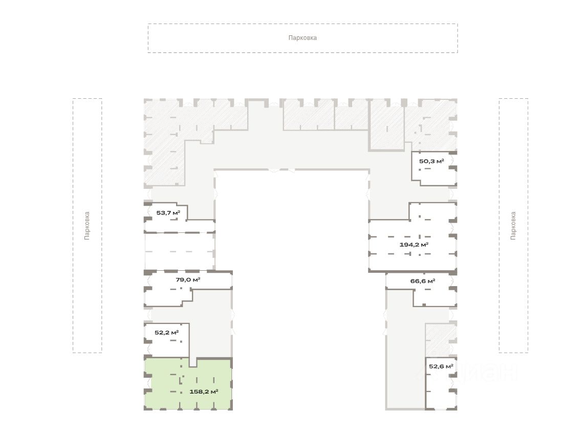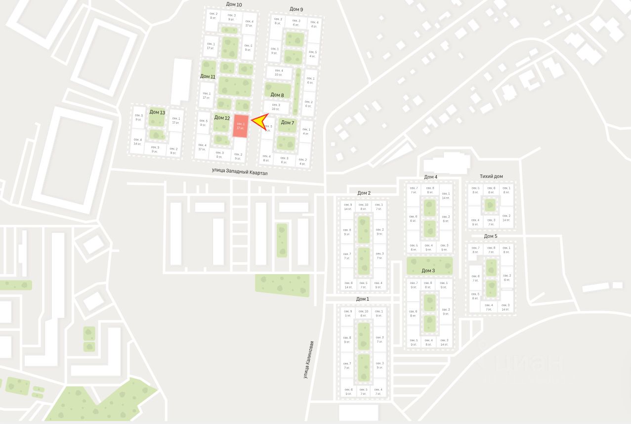 - занимает торец жилого корпуса на внутреннем перекрестке ЖК;