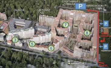 ЖК Римский квартал удачно расположен к югу от столицы всего в 1 километре от МКАД по Каширскому или Бесединскому шоссе.