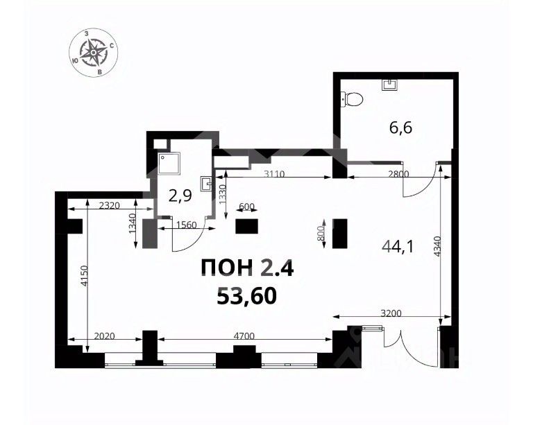 843490 . Предлагаем угловое помещение свободного назначения формата street-retail в ЖК "1-й Южный", площадью 53.6 кв. м, расположенное на первом этаже 25-этажного жилого дома. Корпус: 10. Без комиссии для покупателя.
