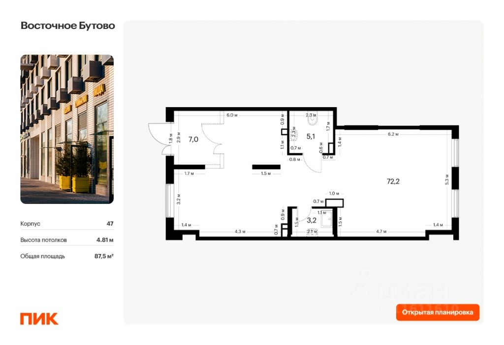 Выгода 5% на строящееся помещение по промокоду COMM5 до 28 февраля. Продаётся нежилое помещение свободного назначения в новом жилом районе Восточное Бутово от ПИК. Открытая планировка, витринное остекление, удобный вход на уровне земли. Помещение номер 11. Продажа напрямую от застройщика.