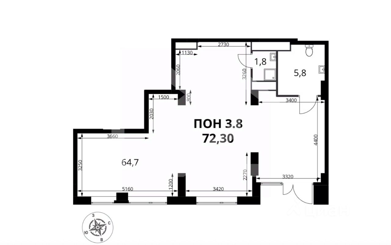 991398-s . Предлагаем помещение свободного назначения формата street-retail в ЖК "1-й Южный", площадью 72.3 кв. м, расположенное на первом этаже 25-этажного жилого дома. Корпус 10. Без комиссии для покупателя.