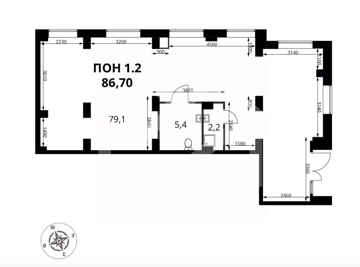 991409-s . Предлагаем помещение свободного назначения формата street-retail в ЖК "1-й Южный", площадью 86.7 кв. м, расположенное на первом этаже 25-этажного жилого дома. Корпус 10. Без комиссии для покупателя.