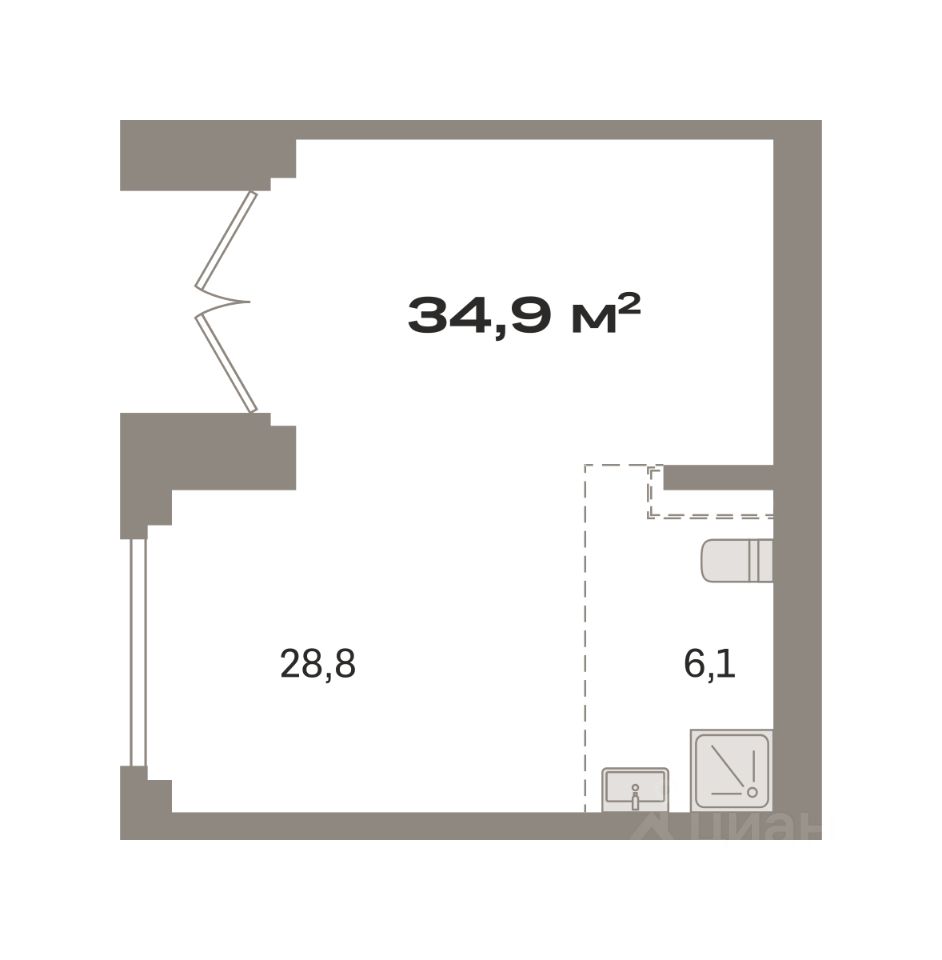 • Общая площадь34,9 м²