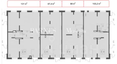 Лот под объединение из 4 помещений: минимум несущих колонн, открытая